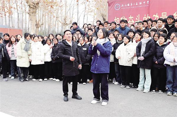 12月20日,黨的二十大代表、全國最美教師劉秀祥(前左)到扶溝縣第二高級中學(xué)開展“弘揚踐行教育家精神”“傳承紅色基因、學(xué)思踐悟中國共產(chǎn)黨人精神譜系”活動,結(jié)合自己的成長經(jīng)歷,引導(dǎo)學(xué)生立報國強國大志向、做挺膺擔(dān)當(dāng)奮斗者。