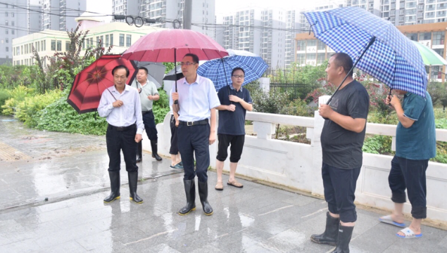 7月22日,開(kāi)發(fā)區(qū)黨委書(shū)記王文峰帶領(lǐng)區(qū)直有關(guān)部門(mén)檢查河道及城市道路防汛工作。開(kāi)發(fā)區(qū)管委會(huì)副主任李鵬,副調(diào)研員趙愚、王靜等參加活動(dòng)。