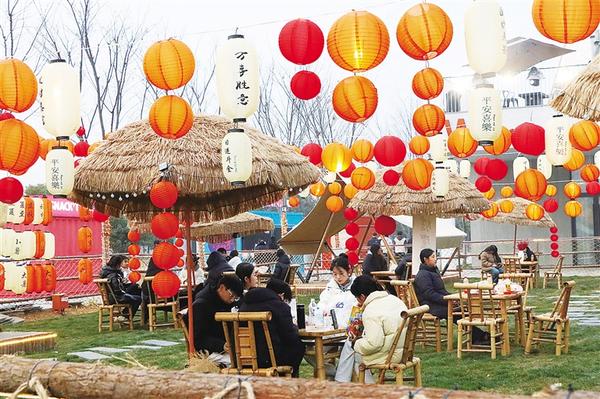 近日,周口首屆永福新春游園會(huì)在引黃調(diào)蓄湖畔啟動(dòng),吸引不少群眾前去看文藝演出、逛文創(chuàng)集市、嘗傳統(tǒng)小吃。圖一為群眾在露營(yíng)地休息。圖二為群眾乘船游玩。