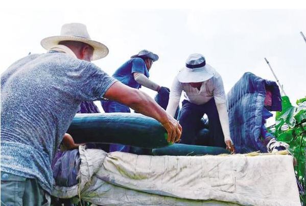 時(shí)入初秋,鄲城縣錢店鎮(zhèn)前堿廠黑皮冬瓜種植基地,一壟壟黑皮冬瓜長勢(shì)喜人,綠色瓜蔓相互纏繞,碩大的冬瓜在竹竿架上搖搖晃晃,呈現(xiàn)一派豐收的景象。