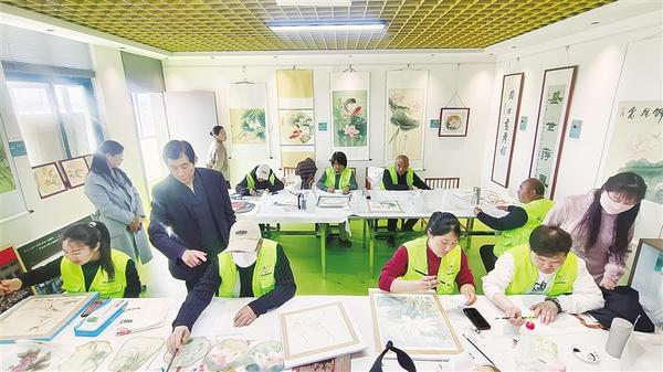 近日,淮陽區(qū)王店街道王樓村村民在美術(shù)老師的指導(dǎo)下畫荷花。作為遠(yuǎn)近聞名的“畫荷村”,王樓村一直延續(xù)著畫荷花的傳統(tǒng)。農(nóng)閑時,村民經(jīng)常在老師的指導(dǎo)下學(xué)習(xí)繪畫技巧,將鄉(xiāng)村生活的恬靜與荷花的靈動融入筆墨之間。