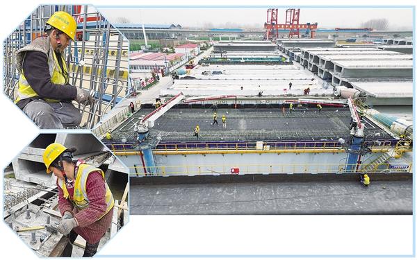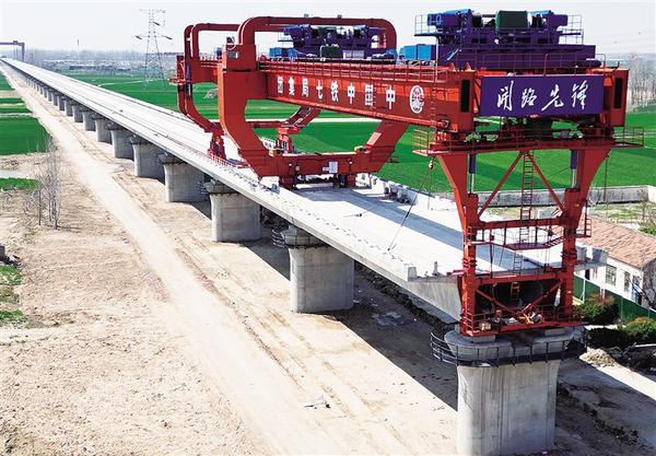 3月17日上午,中鐵七局的工人正在緊張施工。目前,平漯周高鐵項(xiàng)目快速推進(jìn),周口境內(nèi)商周特大橋跨河流、國道、高速等連續(xù)梁施工進(jìn)入加班加點(diǎn)搶工期階段,樁基、承臺、墩身施工接近尾聲,已鋪架箱梁90榀。