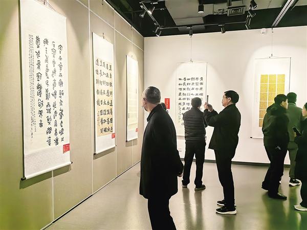 3月14日,市民在周口美術(shù)館觀展。由中共河南省委宣傳部、河南省文學(xué)藝術(shù)界聯(lián)合會指導(dǎo),河南省美術(shù)家協(xié)會、河南省書法家協(xié)會等部門共同主辦的“翰墨潤中原——河南省美術(shù)書法作品大賽獲獎作品展周口巡展”當(dāng)日開展。