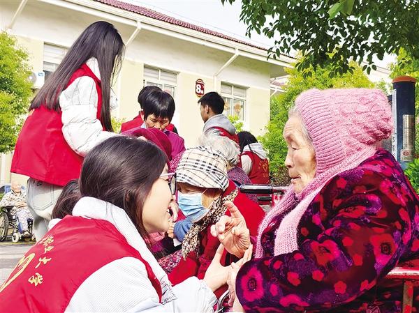 3月15日,志愿者和老人拉家常。當(dāng)日,河南科技職業(yè)大學(xué)組織青年志愿者走進(jìn)周口市老年護(hù)理院,開展以“暖心敬老行,情滿夕陽紅”為主題的敬老愛老活動。