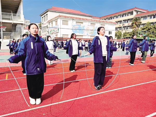 2月26日,周口市第十九初級中學(xué)九年級學(xué)生在大課間跳繩。從2025年春季學(xué)期起,我市全面推動(dòng)義務(wù)教育階段學(xué)校每天開展兩小時(shí)綜合體育活動(dòng)。