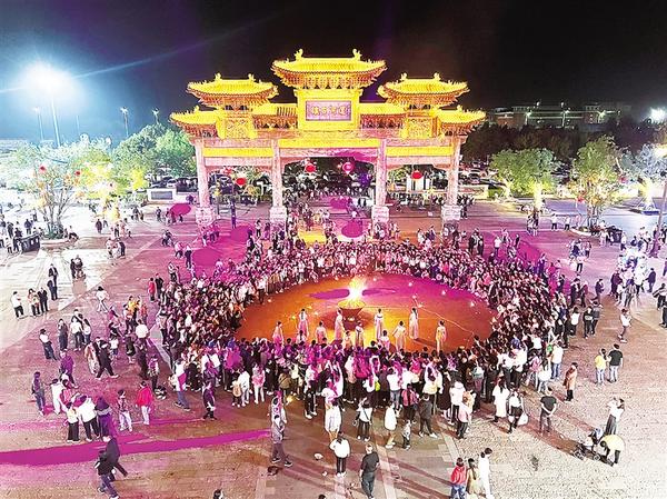 近日,游客在周口建業(yè)運(yùn)河古鎮(zhèn)篝火晚會(huì)歡聚。近期,這里天天都會(huì)有盛大的篝火晚會(huì)。