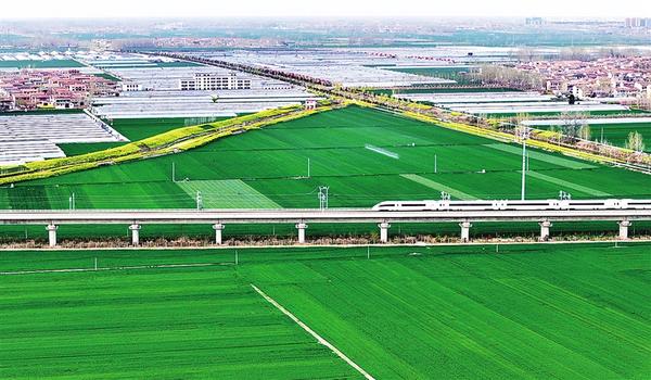 4月11日,一列高鐵列車駛過扶溝縣境內廣袤的麥田。近年來,扶溝縣累計建成高標準農田119.7萬畝,疏浚治理河道64公里,維修重建閘涵33座,為實現(xiàn)穩(wěn)產增收提供了堅實保障。