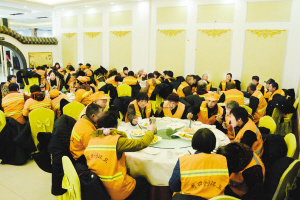 本報訊 (記者 徐啟峰 通訊員 劉巍 文/圖) 2月17日,農(nóng)歷臘月二十九上午,愛心人士韓平為川匯區(qū)環(huán)衛(wèi)工人送去棉大衣,并邀請環(huán)衛(wèi)工人共進午餐(如圖)。
