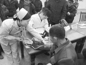 昨日,周口經(jīng)濟(jì)開發(fā)區(qū)組織醫(yī)務(wù)人員為轄區(qū)內(nèi)的五保戶義診。為讓轄區(qū)內(nèi)的五保戶感受到大家庭的溫暖,該區(qū)通過定期開展系列看望慰問活動(dòng)為老人送去愛心和關(guān)懷。 (記者 沈湛 攝)