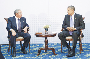 去年12月,美古兩國宣布啟動關(guān)系正?;M程。本屆峰會期間,奧巴馬與古巴領(lǐng)導人勞爾·卡斯特羅舉行了兩國斷交半個世紀以來的首次會晤,被認為是近期兩國通過談判推進關(guān)系正?;囊淮瓮黄?。