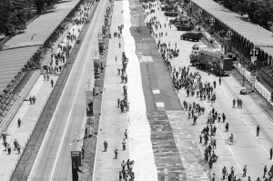 4月13日,由上萬名委內瑞拉民眾縫制、長達1200米的一面巨幅委內瑞拉國旗在該國首都加拉加斯偉人廣場亮相。這面國旗由委內瑞拉各地民眾縫制的黃、藍、紅三色小塊布匯總拼接而成,象征委內瑞拉人民對祖國的熱愛和支持,抗議美國對委官員進行制裁。