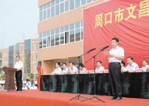 2012年,乘著周口市委“科教興周戰(zhàn)略”的東風(fēng),由周口市委、市政府、市東新區(qū)管委會傾力打造,投資3億元?jiǎng)?chuàng)辦的周口市文昌中學(xué)應(yīng)運(yùn)而生。市委書記徐光親筆為該校題下“礪學(xué)弘文、昌達(dá)天下”的校訓(xùn)。