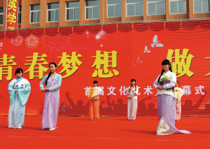 該校把特色教育作為發(fā)展的名片,推出“一班一品一特色”活動。學(xué)校建立以班級為單位的社團(tuán)組織,并細(xì)分為體育類、舞蹈類、樂器類、美術(shù)類四大類別,共70個(gè)社團(tuán)。比如:美工社團(tuán)制作漢服進(jìn)行表演,每一次都讓在場的觀眾潸然淚下,為自己是一個(gè)漢唐中華子孫而驕傲,為著漢唐服裝而自豪。學(xué)校出版了《求真大課堂》《走在成長的路上》《花季無悔》《中學(xué)生科技創(chuàng)作》《班主任德育思想錄》《國學(xué)之蘊(yùn)》《家和萬事興》《共創(chuàng)一個(gè)夢 和韻文昌之家校共建》《“文昌杯”文明我先行 共筑一個(gè)夢》主題征文作文選等校本教材。為豐富校園文化生活,學(xué)校邀請中國政法大學(xué)的霍登科,歷史文化學(xué)者王少清,青少年心理教育專家張海選、萬禮彬,周口市中心醫(yī)院婦產(chǎn)科主任楊莉,河南國學(xué)院的施柳貞、王福琪、楊茹梅以及國內(nèi)外優(yōu)秀大學(xué)生對學(xué)生進(jìn)行國學(xué)誦讀和教育、演講比賽、法制教育、夢想目標(biāo)教育、青春期心理和生理教育等活動。在該校首屆“做大成教育 展青春夢想”文化藝術(shù)節(jié)活動中,有一項(xiàng)活動叫珍藏十年“心愿瓶”,當(dāng)滿載學(xué)生夢想的心愿瓶準(zhǔn)備珍藏時(shí),晴天出現(xiàn)了彩虹,讓在場的領(lǐng)導(dǎo)、家長、學(xué)生很驚嘆,說文昌中學(xué)的學(xué)生目標(biāo)遠(yuǎn)大,定有大才出現(xiàn)。這些有意義的活動對廣大未成年人的身心健康起到了很好的促進(jìn)作用。