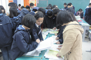 該校將課堂名字定為“求真大課堂”,以“真”字作為學(xué)校一切教育教學(xué)和管理的衡量標(biāo)準(zhǔn)。朱貴華說,求真就是要真教、真學(xué)、真嚴(yán)、真愛、真實(shí)、真會。為提高課堂教學(xué)效果,該??偨Y(jié)出一套獨(dú)特的課堂教學(xué)方法——“七音和鳴”。分管教學(xué)工作的副校長徐其運(yùn)用“1234567”,即哆來咪發(fā)唆拉西”來詮釋“七音和鳴”法。“1”就是一個(gè)學(xué)習(xí)目標(biāo);“2”就是提前兩分鐘進(jìn)班,布置2個(gè)任務(wù)(出示目標(biāo)、檢查學(xué)情);“3”就是準(zhǔn)備3個(gè)本子,即學(xué)情檢效本、跟蹤本、糾錯(cuò)本;“4”是4個(gè)維度考評,即高速度、準(zhǔn)確度、干凈度、參與度;“5”是5個(gè)跟蹤,即節(jié)跟蹤、日跟蹤、周跟蹤、月跟蹤、學(xué)期跟蹤,堅(jiān)持“抓緊跟蹤不放松、我在文昌必成功”的教育信念;“6”是6個(gè)環(huán)節(jié),即激情導(dǎo)入、自研自探、合作探究、展示質(zhì)疑、師生點(diǎn)評、當(dāng)堂檢測;“7”是7個(gè)評價(jià),即教師的教案、學(xué)生的學(xué)案、練案、觀課記錄的每周業(yè)務(wù)評價(jià)及對學(xué)生的即時(shí)性、激勵(lì)性、長效性評價(jià)。