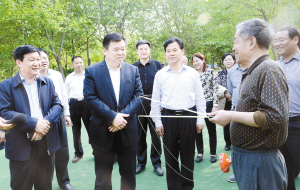 徐光一行又先后深入開發(fā)區(qū)人民廣場、星龍華緣健身場所、融輝城健身活動中心、商水縣夕陽紅健身園、周口市體育中心等地實地察看各項體育健身運動設(shè)施建設(shè)進展情況,聽取籌備工作情況匯報,了解場館布展和開幕式準(zhǔn)備情況??吹揭患湫碌慕∩磉\動器材、一塊塊新近完善提升的健身場地,特別是正在進行健身運動群眾的一張張笑臉,徐光滿意地點點頭,并來到市民中間,與大家親切交談,和正在健身的市民打乒乓球、試用健身器材,共同分享健身帶來的樂趣。徐光說,我市作為省十二屆“老健會”的承辦方,在時間緊、任務(wù)重、標(biāo)準(zhǔn)高、壓力大的情況下,各相關(guān)單位按照市委、市政府的安排部署,講政治、顧大局、做貢獻,做了大量卓有成效的工作,可以說我市的全民健身場所功能得到了完善、形象得到了提升,市民參與健身活動的途徑和選擇更加方便多樣,參與健身的熱情更加高漲,市委對大家的工作是滿意的。但是,我們還要看到,我市的全民健身工作與群眾的需求還存在一定差距,必須進一步加大投入力度,建設(shè)好、管理好、使用好相關(guān)體育健身設(shè)施,使之能夠更好地滿足群眾健身需求,服務(wù)百姓生活。