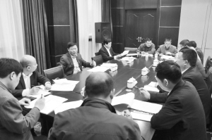 梁建松與相關(guān)單位負責同志商討縣級財政產(chǎn)業(yè)發(fā)展引導基金實施方案。(記者 劉俊濤 攝)