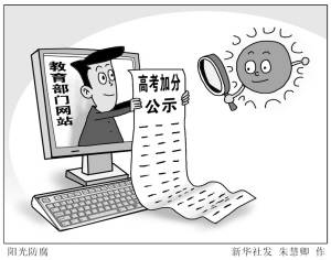 不過,在目前新規(guī)定中仍留一些地方性加分的裁量權(quán),而對考生的相關(guān)學(xué)科特長和創(chuàng)新潛質(zhì),可作為自主招生試點高校優(yōu)先給予初審?fù)ㄟ^的條件。有家長和專家指出,要警惕這些所謂地方或自主招生優(yōu)先項目,其中仍存有腐敗空間,希望進一步加大相關(guān)信息的透明度。 新華社發(fā)