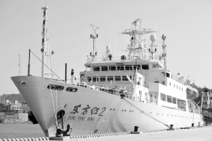 “東方紅2號”海洋綜合調(diào)查船赴南海進(jìn)行科學(xué)考察 5月10日,“東方紅2號”調(diào)查船在國家海洋局青島海洋科學(xué)考察基地碼頭整裝待發(fā)。當(dāng)日,“東方紅2號”海洋綜合調(diào)查船從國家海洋局青島海洋科學(xué)考察基地啟航,赴南海進(jìn)行為期兩個(gè)月的科學(xué)考察。新華社記者 張建松 攝