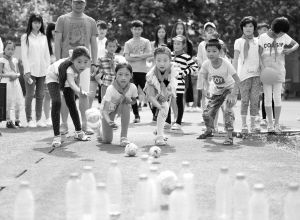 安徽亳州:留守兒童大學(xué)校園歡樂迎“六一” 5月24日,在安徽省亳州職業(yè)技術(shù)學(xué)院,幾名留守兒童在玩“保齡球”游戲。當(dāng)日,安徽省亳州職業(yè)技術(shù)學(xué)院邀請譙城區(qū)牛集鎮(zhèn)安溜小學(xué)50多名留守兒童來到大學(xué)校園,開展“放飛夢想迎六一”主題活動。大學(xué)生與孩子們一起進(jìn)行了各種趣味游戲,讓孩子們提前過了一個開心的“六一”兒童節(jié)。新華社發(fā)