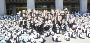 熊貓軍團(tuán)“占領(lǐng)”首爾 5月23日,在韓國首爾,展覽工作人員與紙制大熊貓合影。當(dāng)日,1600只紙制大熊貓?jiān)谖挥谑谞柺兄行牡氖雷谖幕瘯?huì)館前亮相?!凹堉拼笮茇埵澜缰谩被顒?dòng)創(chuàng)辦于2008年,由世界自然基金會(huì)和法國藝術(shù)家保羅·格蘭金聯(lián)合發(fā)起,以回收的廢紙和雞蛋殼為材料,設(shè)計(jì)制作1600只形態(tài)各異、表情豐富的大熊貓,目的是推廣保護(hù)大熊貓和民眾的環(huán)保意識。新華社發(fā)