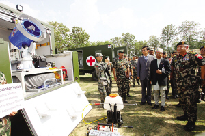 尼泊爾軍方25日在位于加德滿都的軍隊醫(yī)院大草坪舉行隆重交接儀式,感謝中國把兩套總價值5900萬元人民幣的野戰(zhàn)醫(yī)院設(shè)備贈予尼軍。