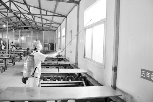 “這個(gè)藥品叫順氯·殘殺威,對(duì)消殺蚊蠅有很好效果,作用可以持續(xù)3個(gè)月左右。這會(huì)兒食堂里有刺鼻的味道,但十幾分鐘后基本上就聞不到了?!笔屑部刂行南究瓶崎L(zhǎng)胡偉說(shuō),這次用于消殺蚊蠅的都是高效、低毒的藥物,對(duì)人體危害不大。如果學(xué)生不小心觸摸到了,只要用清水洗掉即可,不用過(guò)于擔(dān)心。