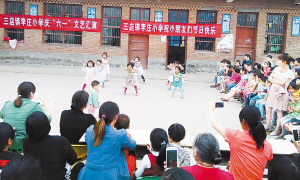 左圖 兒童節(jié)前夕,項城市積極組織小學、幼兒園開展慶“六一”活動,讓小朋友享受更多的歡樂和溫暖。圖為三店鎮(zhèn)李莊小學的孩子正在表演節(jié)目。(張永久 攝)