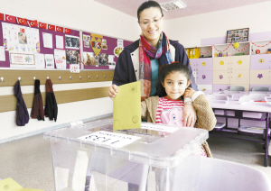 土耳其舉行議會選舉 6月7日,在土耳其首都安卡拉一個(gè)投票站,一個(gè)小女孩幫媽媽投票。土耳其議會選舉當(dāng)日開始投票。執(zhí)政的正義與發(fā)展黨、主要反對黨共和人民黨、民族行動(dòng)黨和親庫爾德的人民民主黨在內(nèi)的20個(gè)政黨參加競選,角逐550個(gè)議會席位。新華社發(fā)