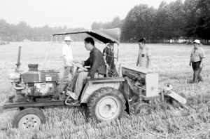 ?。?)察看機(jī)播秋季作物。
