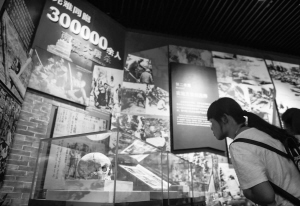 ① 7月12日,觀眾在中國人民抗日戰(zhàn)爭紀(jì)念館觀看“南京大屠殺”的相關(guān)史料。