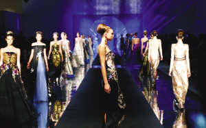 7月13日,在意大利米蘭世博會南京周閉幕時(shí)裝秀上,模特展示中國設(shè)計(jì)師勞倫斯·許的作品。當(dāng)日,中國高級定制設(shè)計(jì)師勞倫斯·許的云錦時(shí)裝秀在意大利米蘭世博會南京周上演,展示了37套由云錦面料制成的高級定制禮服。