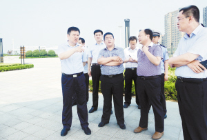 本報訊 (記者 李鳳霞)7月14日,市委書記、市人大常委會主任徐光輕車簡從,帶領(lǐng)市住建局、市交通局、市規(guī)劃局、市城管局、市開發(fā)區(qū)、市東新區(qū)、周口港區(qū)主要負責同志,冒著酷暑,深入中心城區(qū)部分重點項目建設(shè)工地實地調(diào)研,現(xiàn)場解決問題。徐光強調(diào),各級各部門要牢固樹立發(fā)展意識,堅持產(chǎn)業(yè)為基、就業(yè)為本,以產(chǎn)興城、產(chǎn)城互動,做大做強中心城區(qū)。