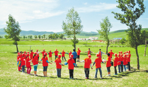第二天:8:00到達(dá)北京,早餐后赴豐寧壩上草原,開營(yíng)儀式;草原上拓展活動(dòng):快樂“拍拍拍”、“親手觀音”、“向前向前”、“排山倒?!钡扔螒颍煌砩匣顒?dòng)分享,書寫親情傳真。