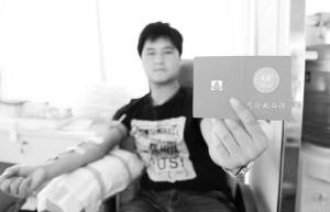 6月14日,一名參加無(wú)償獻(xiàn)血的河北保定市民在展示他的無(wú)償獻(xiàn)血證。當(dāng)日是世界獻(xiàn)血者日,全國(guó)多地開(kāi)展主題活動(dòng),向市民普及無(wú)償獻(xiàn)血的意義,并號(hào)召市民無(wú)償獻(xiàn)血、奉獻(xiàn)愛(ài)心。新華社記者 朱旭東 攝